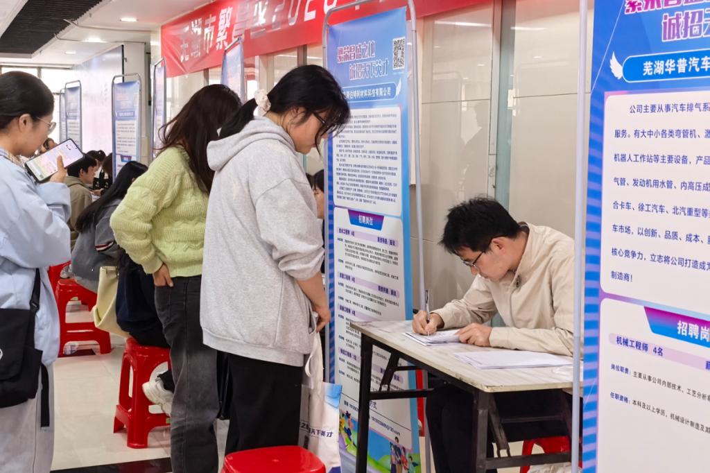 21家繁昌区重点企业现场开展招聘。参会企业涵盖新材料、智能装备、绿色能源、信息技术等多个领域,共提供优质岗位57个,计划招聘212人。企业代表与毕业生面对面交流,详细解答岗位要求、发展路径、薪酬待遇等问题。现场气氛热烈,不少展位前排起长队。同学们纷纷表示,繁昌区位优势明显、产业基础扎实、引才政策实在,是理想的就业目的地。据统计,本次招聘会共收到简历392份,达成初步就业意向190人。下一步,繁昌区人社局与人才发展集团将协同企业,对意向人员进行跟踪对接,推动意向尽快转化为实际签约。